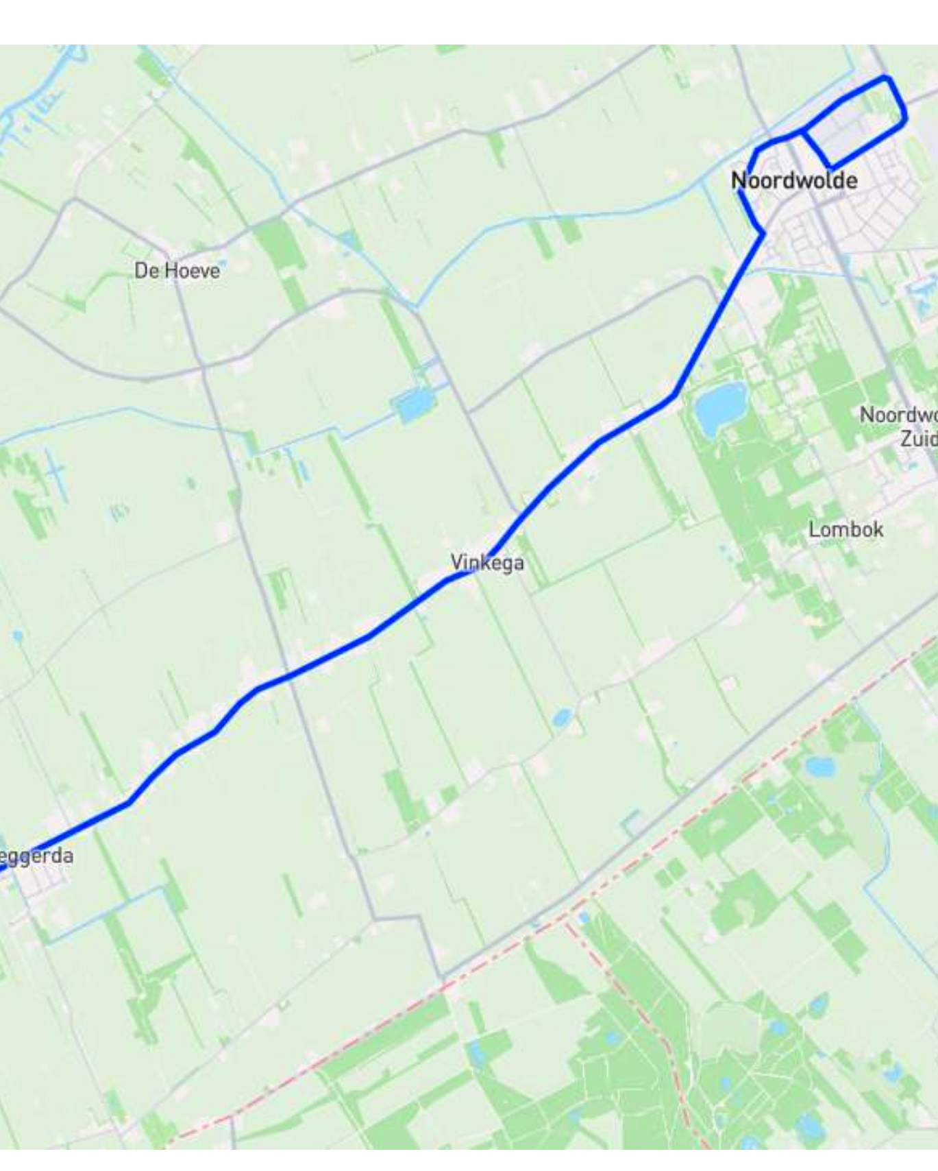 - Rijdt tussen Noordwolde, Vlechtmuseum en De Blesse, Noord.