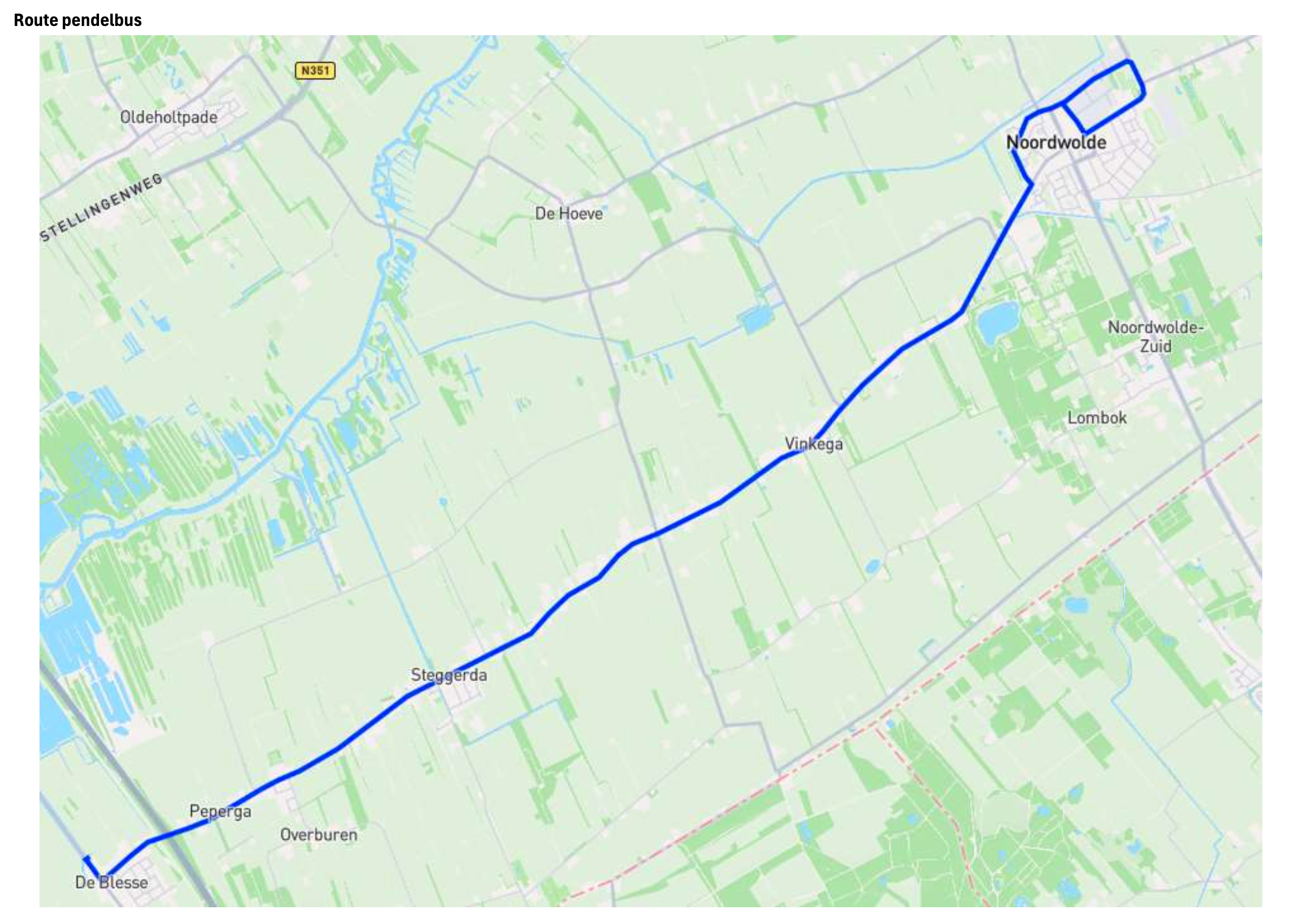 - Rijdt niet via De Blesse, Steggerda, Peperga en Vinkega.